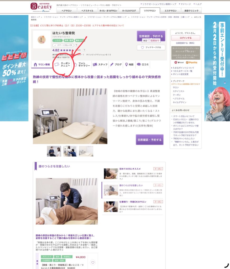 1.ホットペッパービューティーのホームページから事前エントリーが必要です。詳しくはこちらをご参照ください。